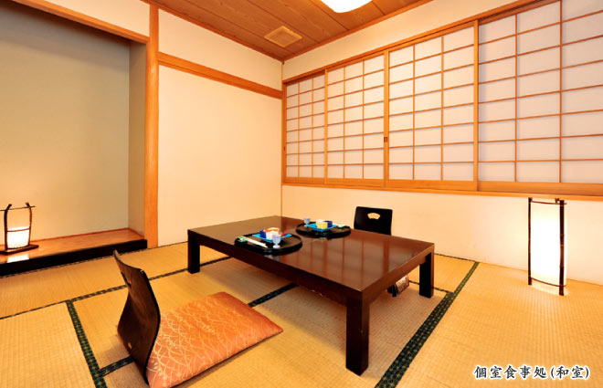 お食事:個室お食事処(和・洋)にてご用意しております。